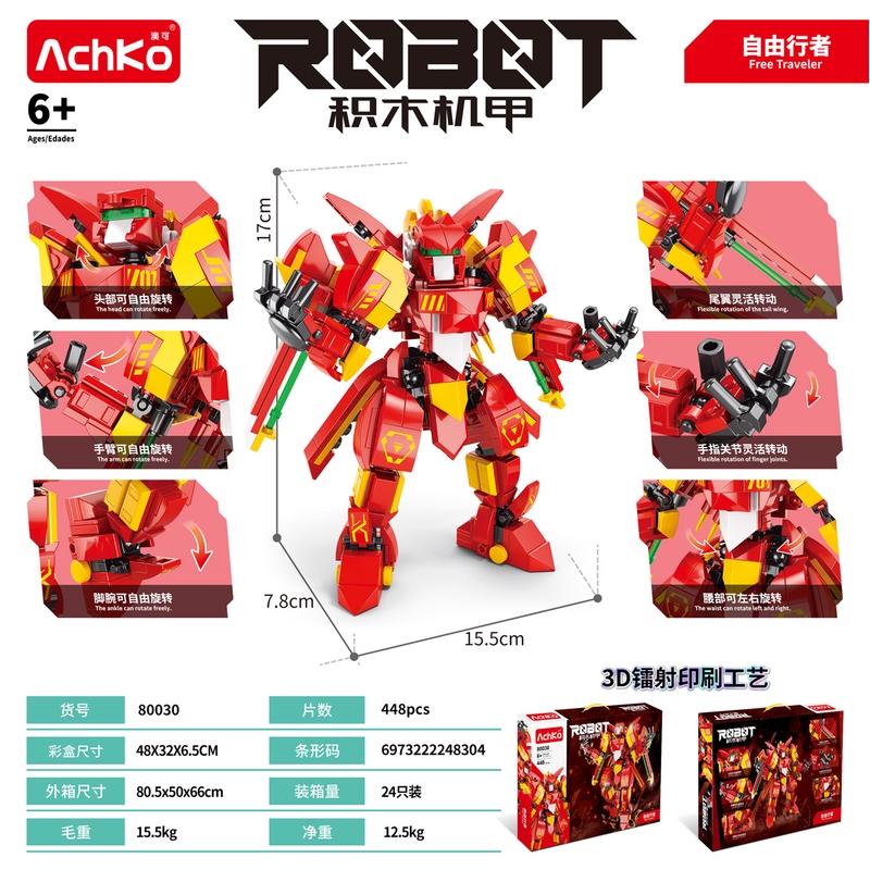 - Bộ lắp ghép gồm 448 chi tiết giúp bạn tạo ra một mô hình robot màu đỏ hoàn chỉnh, với các chi tiết từ đầu, tay, chân đến các bộ phận cơ khí bên trong.