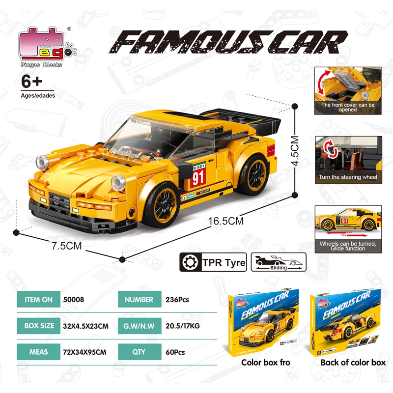 Bộ lắp ghép xe mô hình Corvette màu vàng, kiểu dáng thể thao - 236 pcs