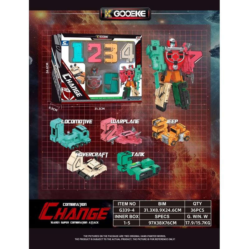 Bộ số kết hợp biến hình robot 1-5 kèm đầu giáp