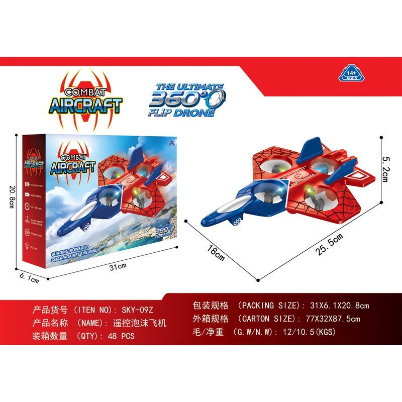 Máy bay xốp SpiderMan xoay 360 độ - có đèn
