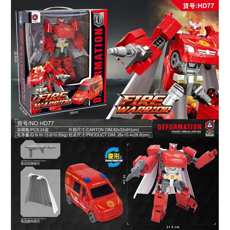 - Biến hình 2 trong 1: Chuyển đổi dễ dàng từ xe cứu hỏa sang robot chiến đấu mạnh mẽ chỉ trong vài bước.