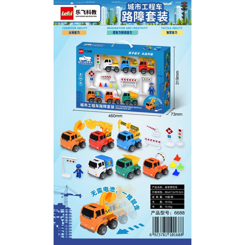 + Bộ sản phẩm đầy đủ: Kèm theo rào chắn, đèn giao thông và phụ kiện giúp bé thỏa sức sáng tạo.