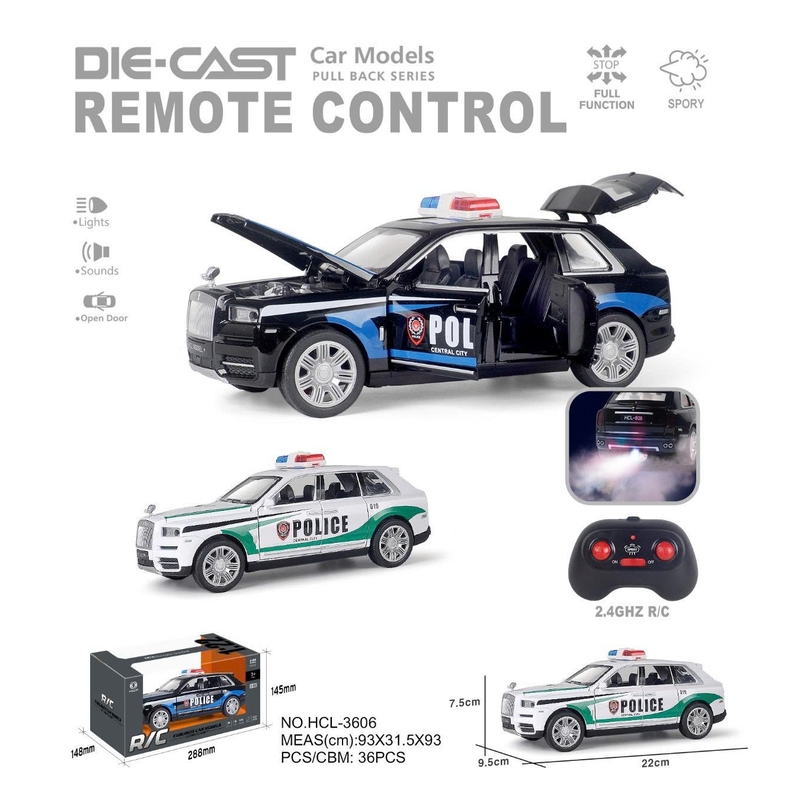 Xe cảnh sát Rolls-Royce Cullinan hợp kim, điều khiển từ xa 1:22 - phun sương, có pin
